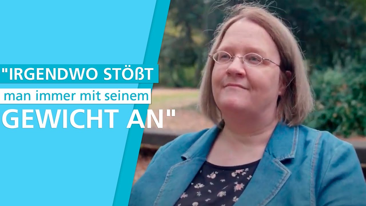 Ich müsste dafür also nach draußen und bin dann wieder mit meinen Mitmenschen konfrontiert. Und das ist für mich das Problem, dass ich mich da lieber zurückziehe. Ich bin eigentlich gar nicht so ein Einsiedlerkrebs. Ich gehe gerne unter Leute. Aber wenn man halt überall angeguckt wird und man "Die Dicke" ist. Und man bewegt sich ja auch nicht so wie die Anderen. Es ist halt alles anders. Irgendwo stößt man halt immer mit seinem Gewicht an. Das ist halt schwer. Im Berufsleben merke ich das mit der Adipositas schon sehr. Das heißt, dass ich mir Sympathien erarbeiten muss. Ich habe immer das Gefühl, dass ich mehr im Fokus stehe, dass man immer mehr auf meine Arbeit schaut.